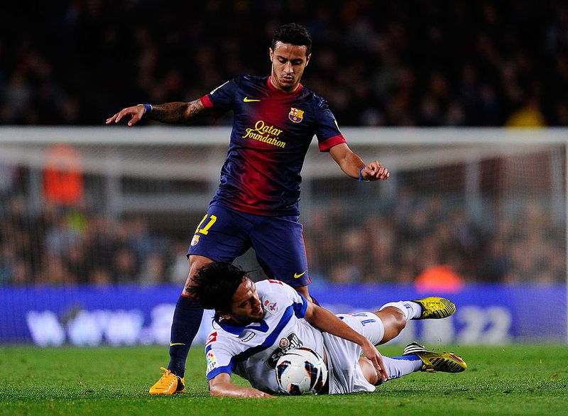 ブラジル代表マジーニョの息子であるチアゴは、2005年にフラメンゴからバルセロナの下部組織に加入。そのプレースタイルから「チャビの後継者」としてみなされた。