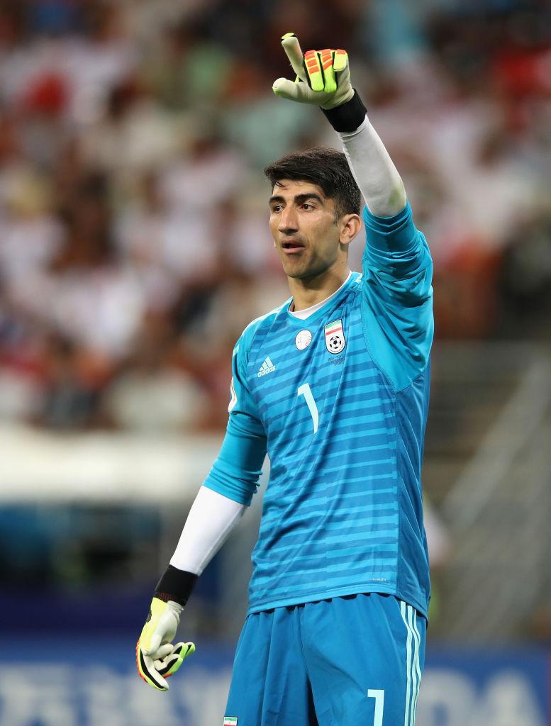 イラン代表の守護神であるアリレザ・ビランヴァンド。世界屈指のスローイングを誇るキーパーとしても知られ、その肩は相手ゴール前までボールを送れるだけのパワーを持っている。