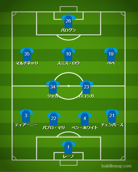 ブカヨ・サカ、リース・ネルソン、ヌーノ・タヴァレスが途中出場。エクトル・ベジェリンやムハンマド・アル・ナーニーはベンチ。