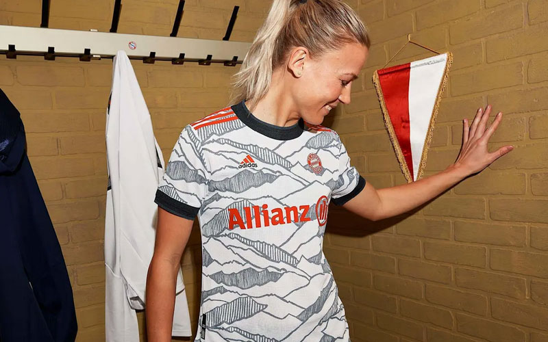 ユニフォームの発表と同時に、男女選手の着用姿も公開。サードも女子チームのスポンサーは、保険会社の「Allianz SE」となる。