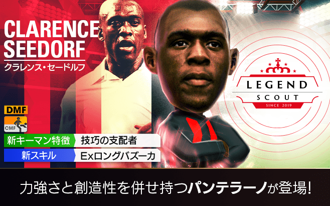 『プロサッカークラブをつくろう! ロード・トゥ・ワールド』イタリア強豪クラブのレジェンド「クラレンス・セードルフ」「フィリッポ・インザーギ」や、現役スター選手が新★5選手として登場する “LEGEND SCOUT”を開催!