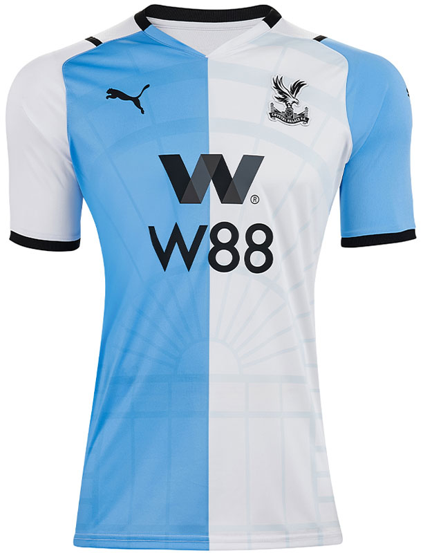 1851年の第1回万国博覧会の会場として建造され、クラブ名の由来となった建物「クリスタル・パレス」を描いたデザイン。ツートンカラーは。クラブが初めて着用そたキットデザインを再現したものだという。