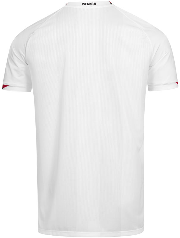 アウェイはホワイトを基調にレッドとブラックの差し色。前面にはエンブレムのライオンをシャドーストライプで描く。