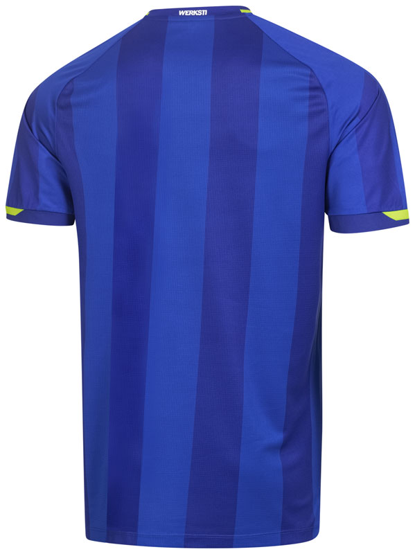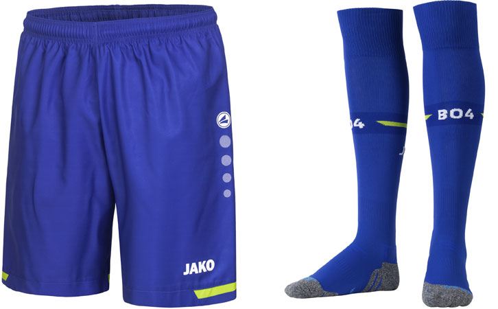 シャツ、パンツ、ソックスともにブルーでまとめ、差し色は明るめのグリーン。レヴァークーゼンでは珍しい色の組み合せである。