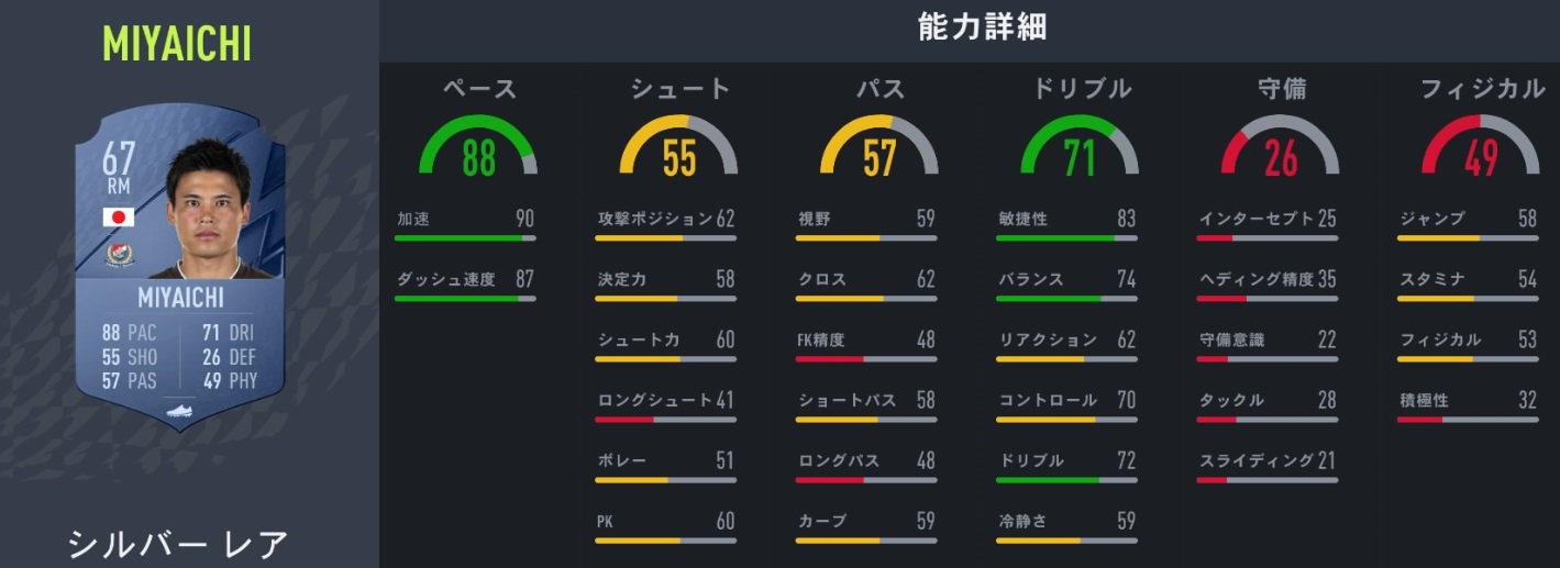 特性:負傷癖、高速ドリブル(AI)