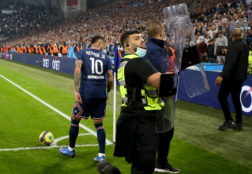 そのため、ネイマールを守るべく警官や警備員がシールドでガードしていたのだ。