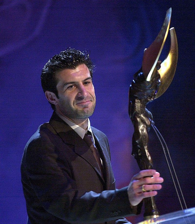 バルセロナからレアル・マドリーへの「禁断の移籍」を行ったころのルイス・フィーゴ。それとは別に、バロンドールでもすこし議論を巻き起こしていた。