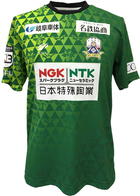 デザインは、日本伝統の鱗文様(うろこもんよう)の中に、エンブレムのレンゲソウ(岐阜の県花)と清流の鮎(岐阜の県魚)を描く。グラデーションで濃淡を付けたことでグラフィックが強調され、その美しさはピッチ上でも輝きを放っていた。