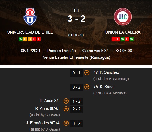ウニベルシダ・デ・チレは1部残留をかけて、最終戦でウニオン・ラ・カレラと対戦。後半39分の時点で0-2とリードされ、2部降格が濃厚に…。