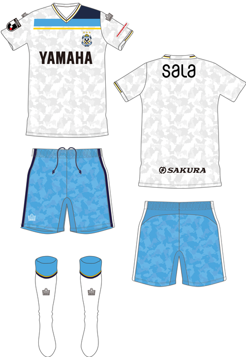 新アウェイユニフォームは、ホワイトを基調としたジュビロらしいデザイン。胸部の色の配し方が実にAdmiralらしい。
