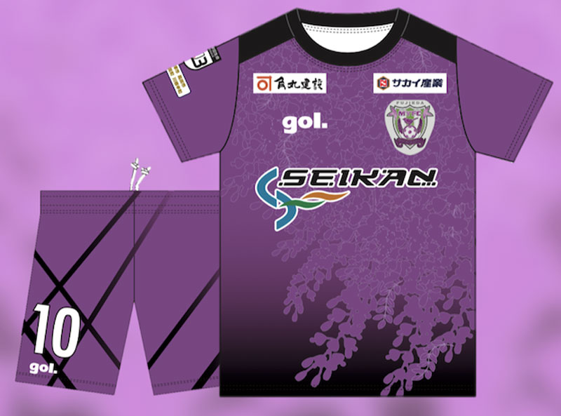 新ユニフォームは、ホームタウン藤枝市の市花でもある藤の花をデザイン。藤棚から吊り下がる藤の花のダイナミズムを表現している。オーセンティックユニフォームのエンブレムは、今シーズンから初めてワッペンが採用となる。