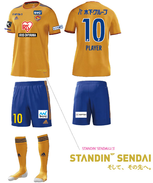 ゴールドとブルーに、情熱と勝利への意欲を表すベガルタレッドを加えてユニフォームは完成する。