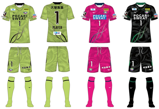 各部のスポンサーは、胸に「POCARI SWEAT(ポカリスウェット)」、背中上に「大塚製薬」、鎖骨右に「ワークスタッフ」、鎖骨左に「BODYMAINTE(ボディメンテ)」、左袖に「アース製薬」、パンツに「阿波銀行」。
