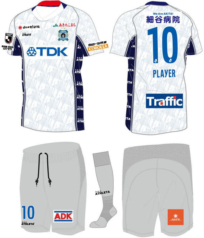 各部スポンサーは、胸に「TDK」、背中上に「細谷病院」(“We Are AKITA!”も併記)、背中下に「Traffic」、鎖骨右に「秋田魁新報」、鎖骨左に「あきたこまち(JA全農あきた)」、左袖に「トヨタカローラ秋田」、パンツ前面に「ADK」、パンツ背面に「あきたレディースクリニック安田」。