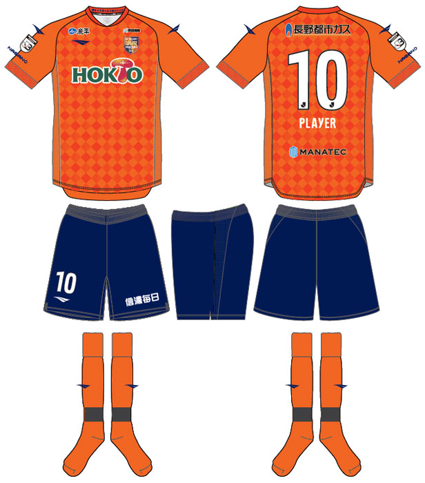 練習拠点である千曲川リバーフロントスポーツガーデンから見える、四季折々の長野の美しい山々を濃淡のグラデーションで表現。襟裏には「獅子よ千尋の谷を駆け上がれ」のメッセージをし刺繍し、右袖のNAGANOの文字は長野を代表して「サポーターと共に一丸となって戦う」という意志を表現している。