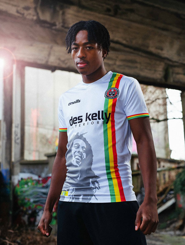 ボヘミアンのホームスタジアム『ダリーマウント・パーク』は、過去に多くのミュージシャンのライブ会場として使われ、ボブもBob Marley & The Wailers(ボブ・マーリー&ザ・ウェイラーズ)時代の1980年7月にライブを開催。そんな縁からボヘミアンのユニフォームにボブが登場となった。