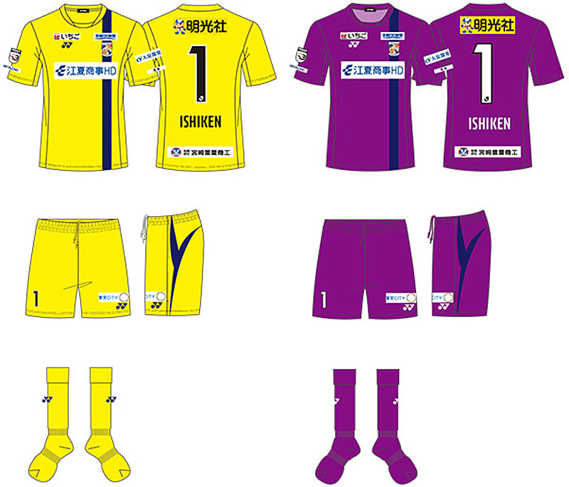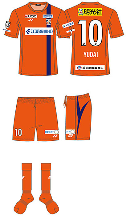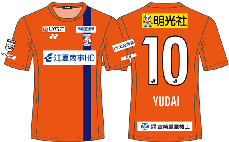 現時点での各部スポンサーは、胸に「江夏商事HD」、背中上に「明光社」、背中下に「宮崎重量機工」、鎖骨右に「いちご」、鎖骨左に「宮崎日日新聞」、左袖に「大淀開発」、パンツに「宮交シティ」。
