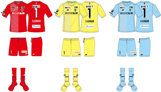 新GKユニフォームは“色の三原色”をイメージした「サンセットレッド」「ライトイエロー」「アクアブルー」の3色展開。「サンセットレッド」は継続使用で、他の2色はこれまでにない鮮やかな色を採用となった。
