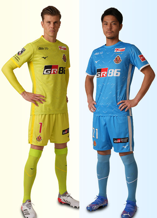 全てが出揃った2022シーズンのレギュラーユニフォーム。現在クラブのオンラインショップで、各ユニフォームの三次予約販売を行っている。詳しくは名古屋グランパスの公式ウェブサイトまで。