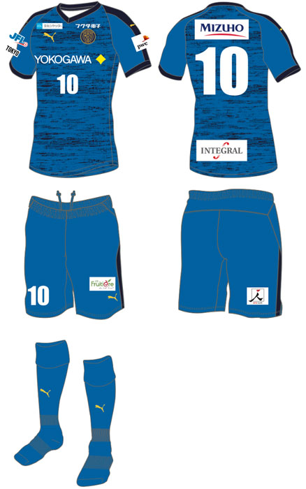ホームキットはシャツ、パンツ、ソックスの全てをブルーで統一。