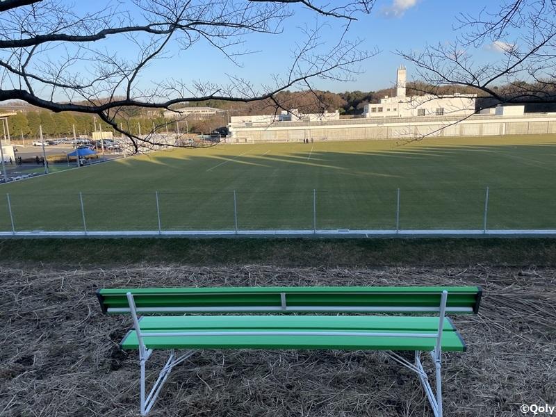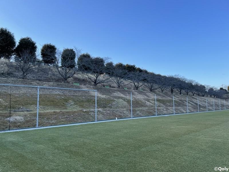 撮影した2021年3月当時はまだ周囲が雑草で覆われていたが、現在は綺麗に刈られている。季節はちょうどこれから春に向かっていくので、ぜひ桜を愛でながらの練習見学を楽しんでみてほしい。