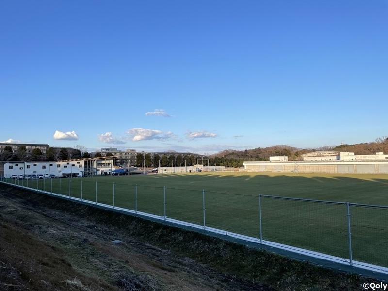 クラブハウスよりもひと足先、2021年秋から稼働しているグラウンドは、全面天然芝のサッカーピッチ2面分という広さを誇る。芝は高密度で耐性の強い新品種「タホマ31」を採用。Jクラブ練習用の天然芝グラウンドでは初導入とのことだ。