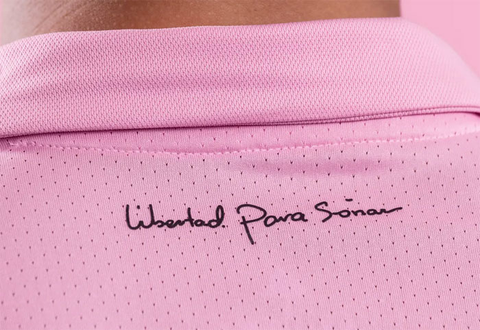 背面の“Libertad para soñar(夢を見るのは自由)”。クラブの共同オーナーであり会長のデヴィッド・ベッカム氏も、この言葉のタトゥーを彫っているらしい。