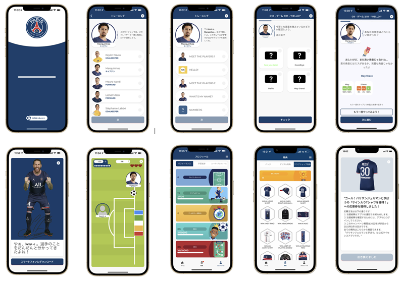 「GOAL(GO And Learn)-パリサンジェルマンと学ぼう」アプリは、3月3日にリリース。App Storeからダウンロードができ、2022年4月初旬にはアンドロイド用をリリースされるほか、今後数カ月で新たな⾔語を追加する予定だという。