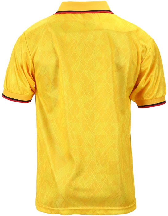 イエローを基調のサードユニフォーム。襟部分や袖口に配したロッソネロや、シャツ全体の透かしも細かに再現した一着となっている。