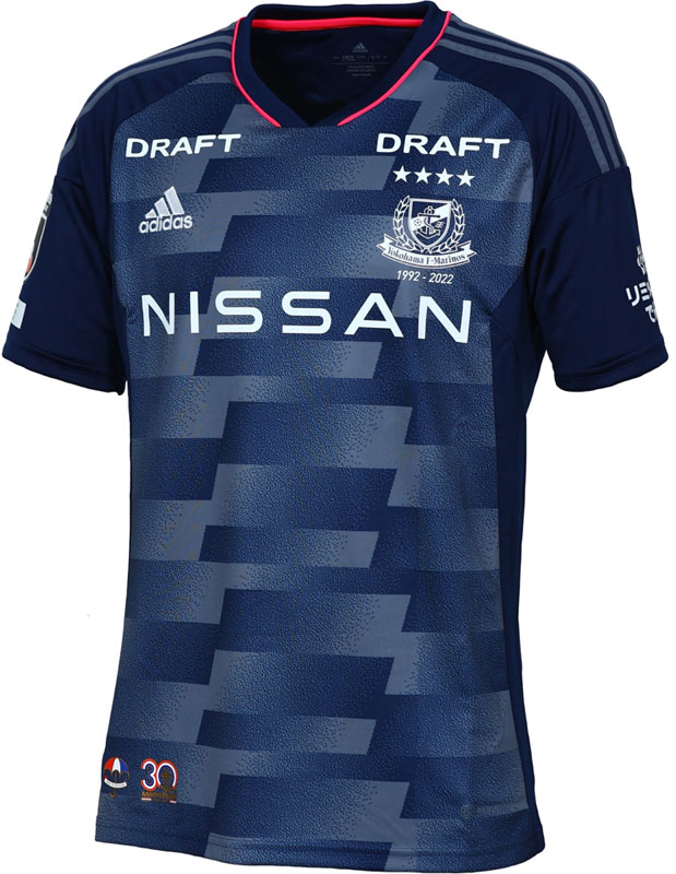 今年でクラブ創設30周年の横浜F・マリノス。ユニフォームカラーは、横浜を象徴するレンガ調の街並みにも馴染みやすいネイビーを基調としながら、アクセントとして横浜市花であるバラを表現したピンクを採用となった。