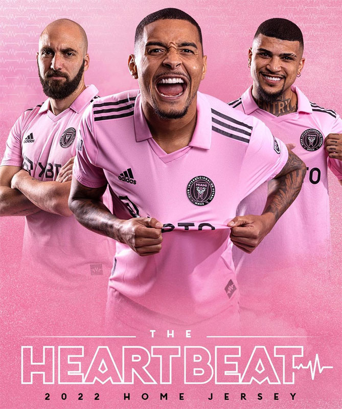クラブ史上初の“オールピンク”ユニフォーム。これは1980年代や90年代という“時代”にインスパイアされたデザインで、袖口に「ファンの鼓動」をエンボスで落とし込む。