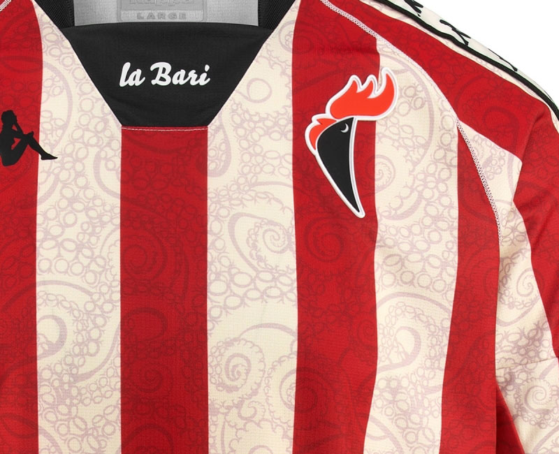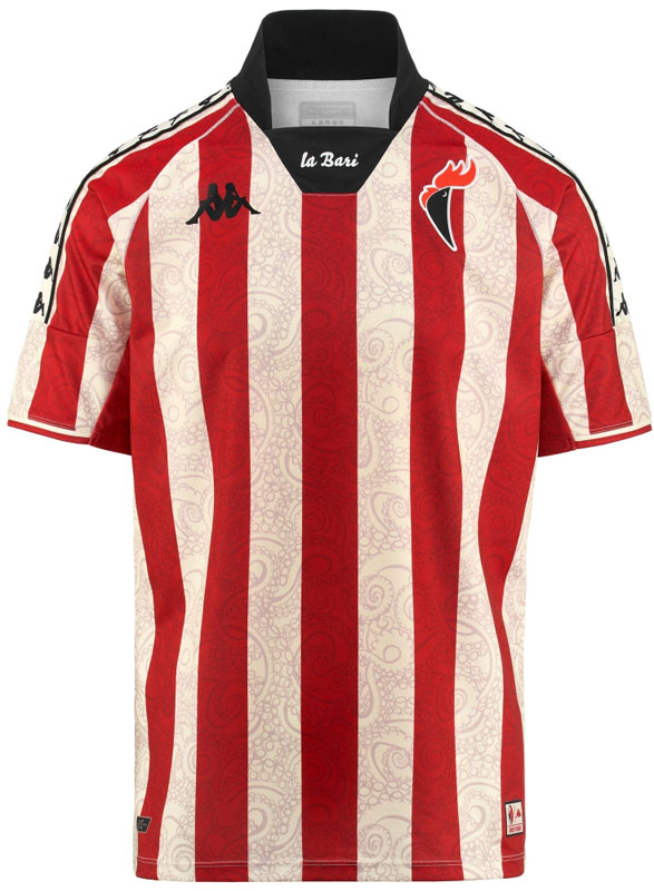 バーリとサプライヤーのKappaがイタリアのアパレルブランド『LC23』とコラボした今回のユニフォーム。全体的なデザインは90年代のKappaユニを彷彿とさせ、懐かしい雰囲気が漂う。