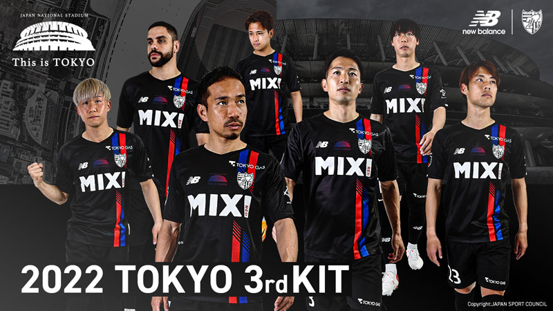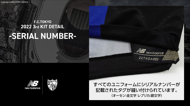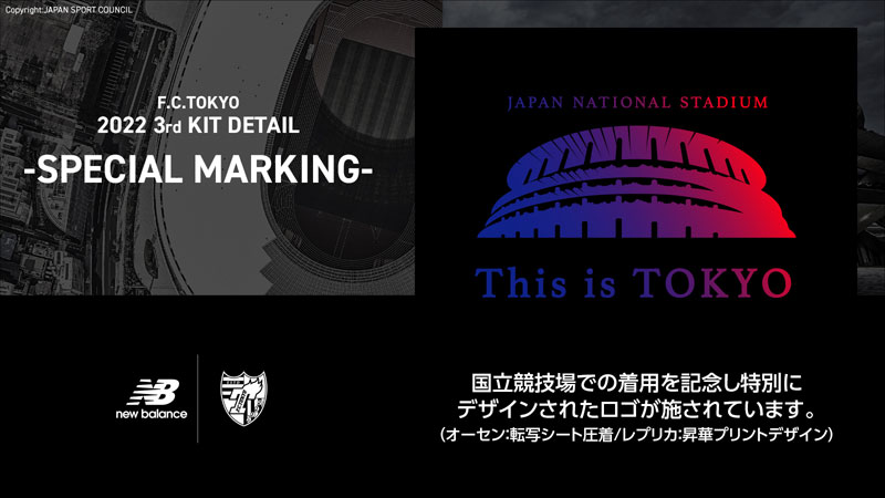 9月の国立競技場での着用を記念して、「JAPAN NATIONAL STADIUM」の文字と国立競技場をクラブカラーである青赤のグラデーションで表現。国立競技場は首都・東京にあり、そしてその地でファン・サポーターとクラブが共に歩んできた歴史、大切な想いを「This is TOKYO」の文字に込めてデザインしている。