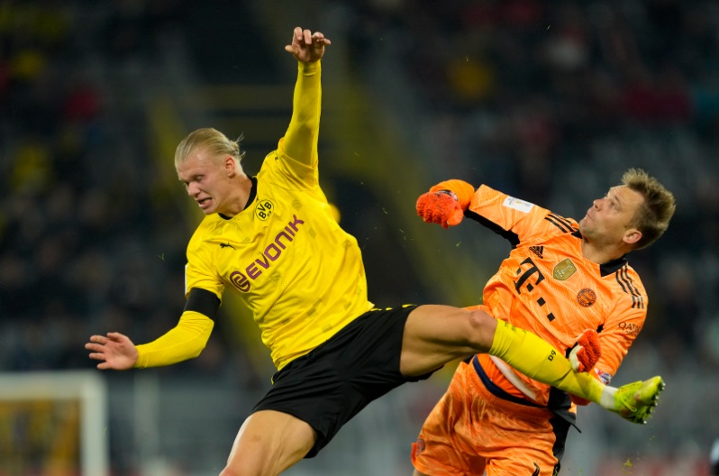 ノイアーとは対戦した6試合中4試合でゴールを奪っており、まさに天敵となっている。ただし、試合結果はノイアーの6戦全勝で、ホーランはまだ一度も勝っていない。