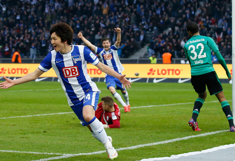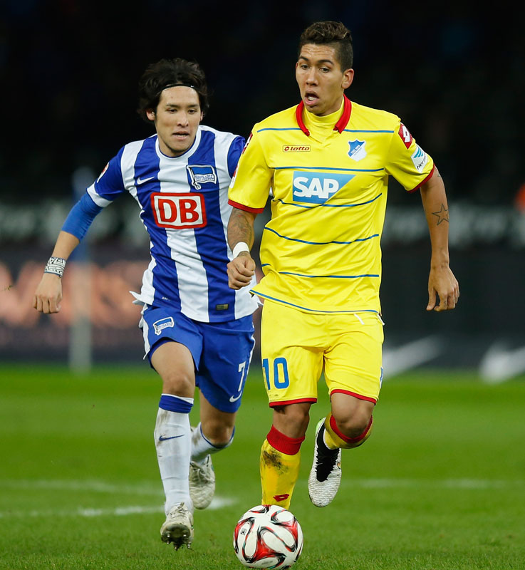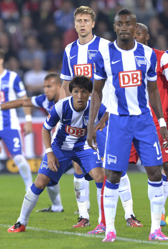 ヘルタでの2シーズン目を迎えた細貝(現ザスパクサツ群馬)。ソン・フンミンやロベルト・フィルミーノなど、現在はプレミアリーグで活躍するワールドクラスの選手たちとも激しいマッチアップを繰り広げた。