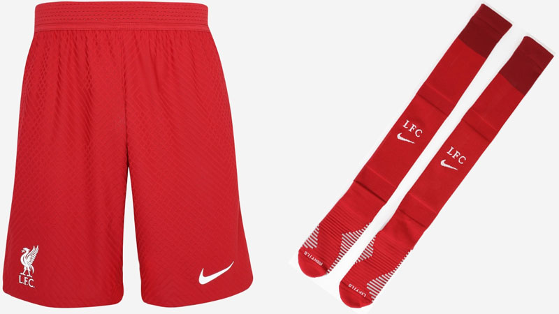 パンツとソックスもシャツと同じレッドを採用し、全身同色に。