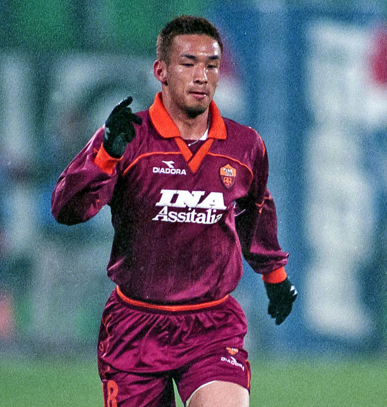 冬の移籍でペルージャを離れローマへ加入した中田英寿。最初に着たジャッロロッシのユニフォームは、袖にオオカミを描くデザインが個性的なデザインだった。