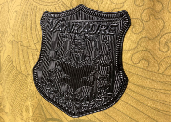 FP用ユニフォームはゴールドを基調に、スポンサーなど各部ロゴマークをブラックで統一。それに合わせてエンブレムもブラックで彩る。