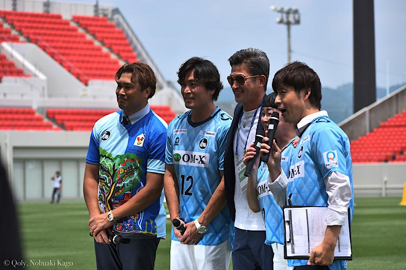 キックオフ前には前座の試合も行われ、そこでは元日本代表選手の久保竜彦さんや本田泰人さんもプレー。