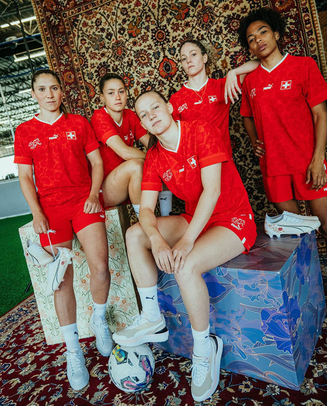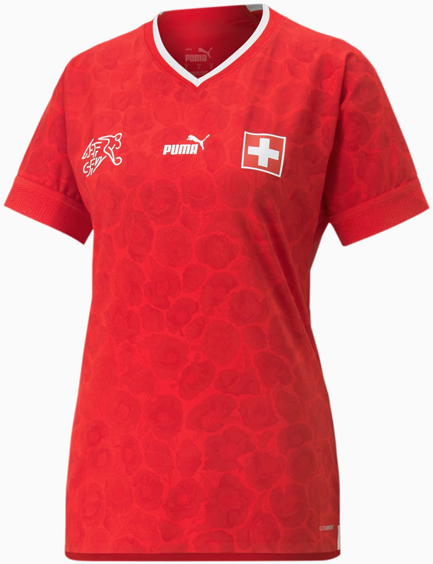 ユーロは2大会連続2回目の出場となるスイス。キットデザインは女子チームのオリジナルで、シャツ全体に花柄を描く。