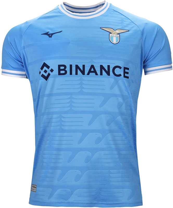 クラブ史上初のMizuno製ユニフォームとなる22-23シーズンモデル。ホームキットは定番のスカイブルーを基調に、前面左側にはエンブレムの“鷲の羽”をエンボスで大胆に描く。胸スポンサーは暗号通貨取引所の「BINANCE」で継続。