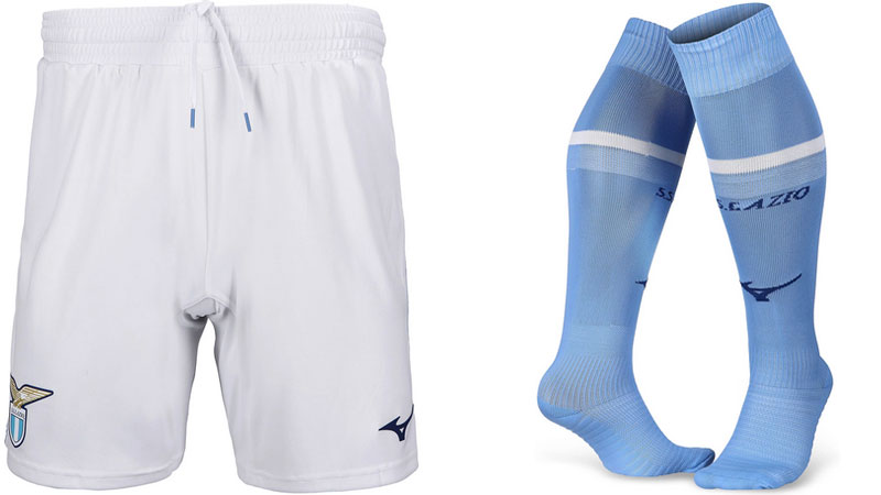 パンツはホワイト、ソックスはスカイブルーを採用。初のMizuno製ホームキットはラツィオらしい定番スタイルが登場した。