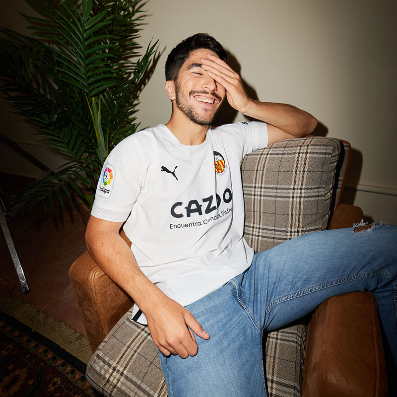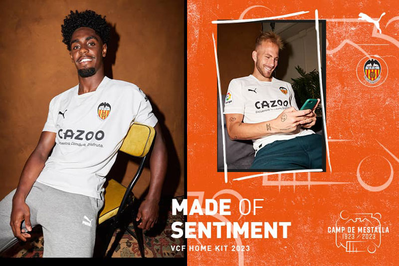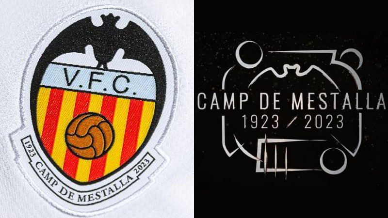 バレンシアのホームスタジアム「エスタディオ・メスタージャ」は、2023年5月20日で開場から100周年を迎える。それを祝して新ユニフォームには、チーム名が“Valencia FC”だった1923年当時のデザインをモチーフにしたエンブレムを装着。また、背面首元には100周年ロゴマークを配する。