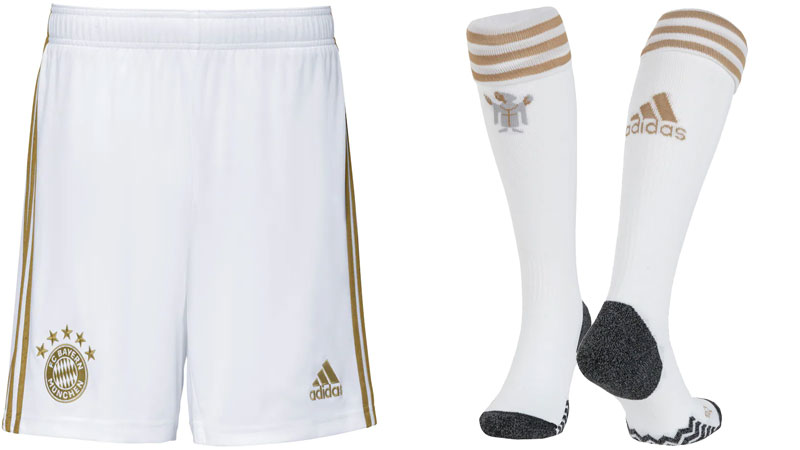 パンツとソックスもホワイトとゴールドの2色を採用。ソックス前面には“ミュンヘン小僧”を描く。