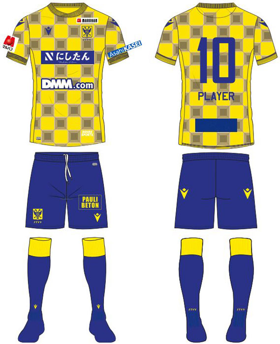 ホームキットの基本スタイルはイエローを基調としたシャツに、ブルーのパンツとソックスという組み合せ。なお、アウェイゲーム用にイエローのパンツとソックスもリリースとなった。