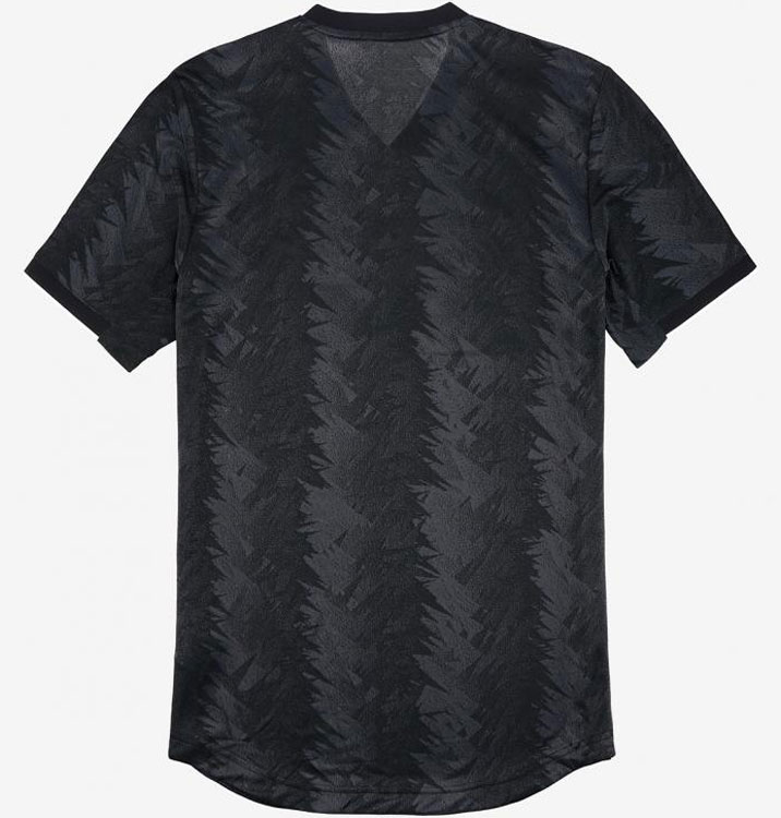 22-23新アウェイユニフォームはブラックを基調とし、アンスラサイト(濃炭色)で独特のグラフィックを描く。シャツを埋め尽くすこの模様は、クラブの説明では“スターダスト”(星屑)とのこと。