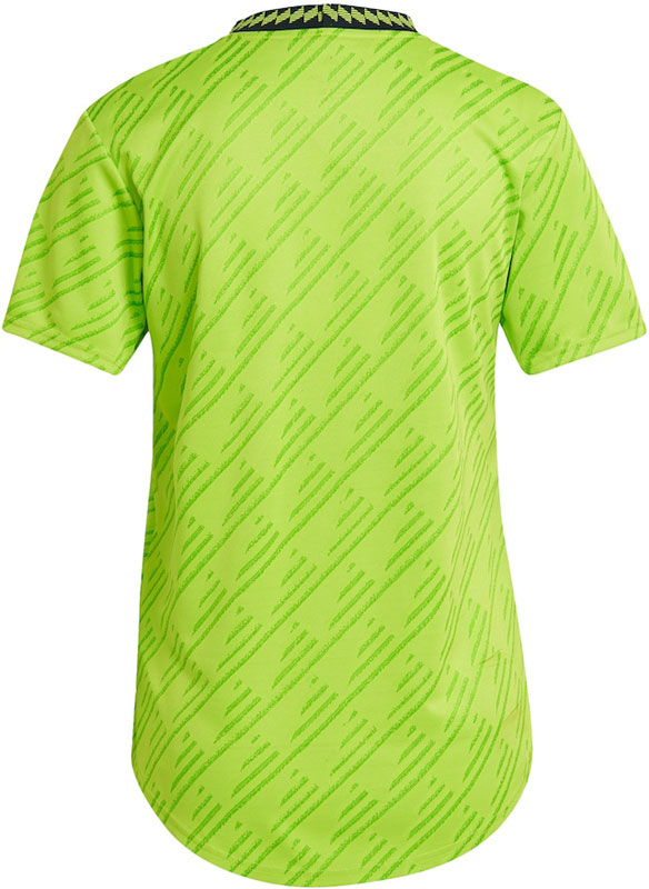 襟部分のジグザグ模様は今季のホームキットと、ブラックをベースとするエンブレムはアウェイとそれぞれ共通する。エンブレムはキットカラーに合わせてグリーンに色を変えているが、これもユナイテッドでは珍しい。