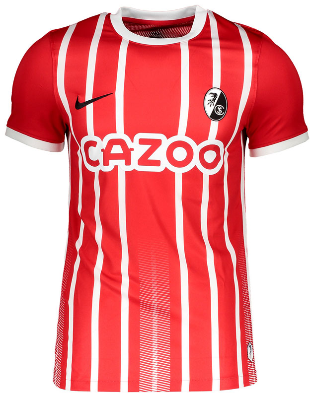 22-23新ホームユニフォームは伝統のレッドを基調に、今季はホワイトのストライプ柄を採用。腹部から裾にかけて、細いラインを斜め配したグラフィックを配置する。胸スポンサーは今季から新たに「CAZOO」へ変更となった。