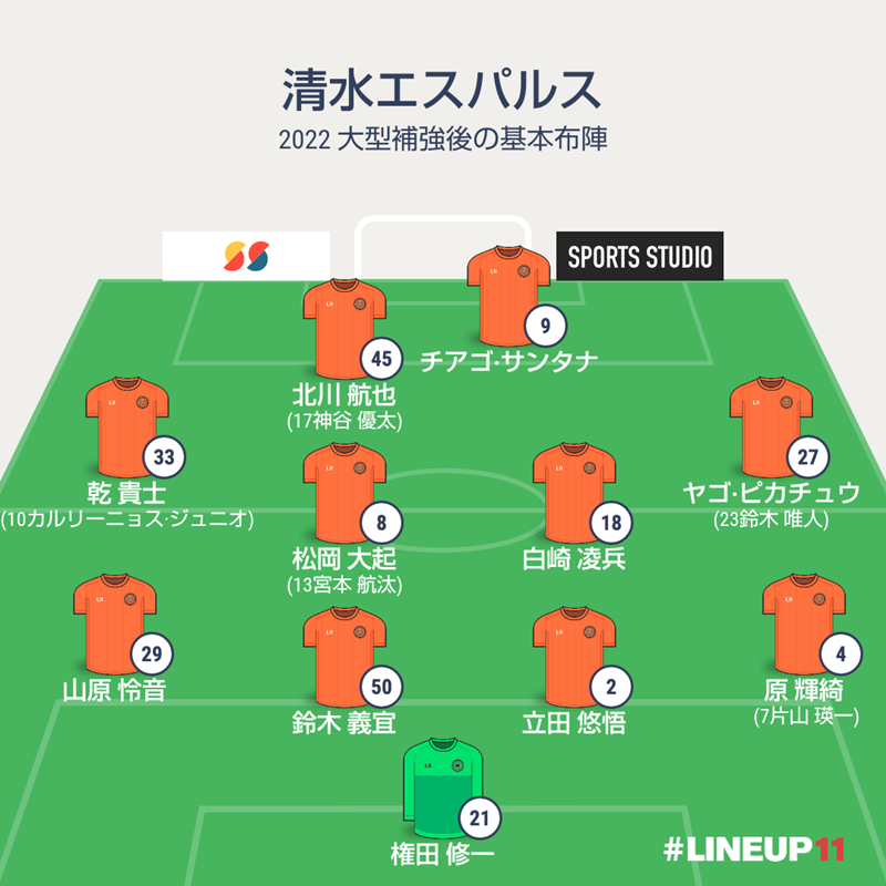 J1残留のキーマンとなるのは、3年ぶりの清水復帰を決断したFW北川だ。2018年には13ゴールを挙げた元日本代表は、エースのチアゴ・サンタナを補完するセカンドトップ起用が最適だ。