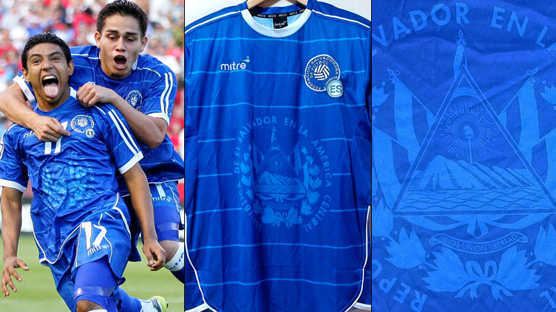 見る者を一瞬で釘付けにする美しくも大胆なユニフォーム。エルサルバドルは90年代から美しいユニフォームをいくつも着ていましたが、なかでもこの2009年モデルは歴代最高傑作の呼び声も高い一着です。
